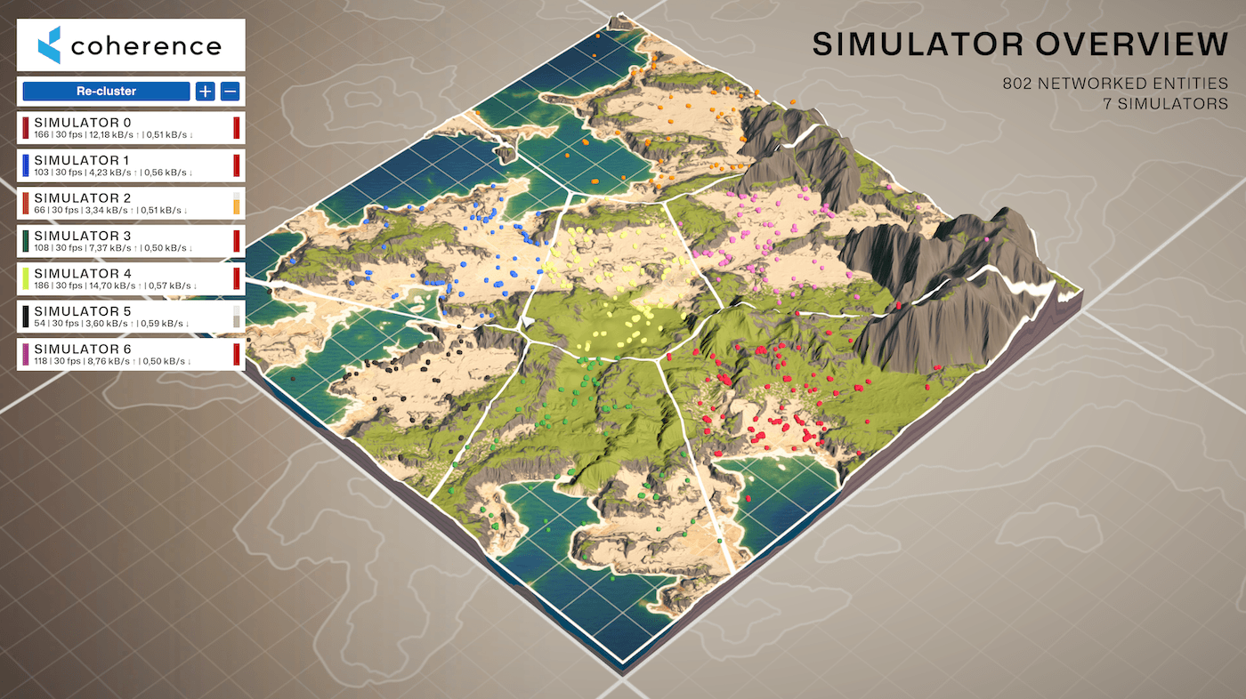A key part of coherence is a smart relay called the Replication Server: a lean and performant server that keeps the state of the world and replicates it efficiently between various Simulators (or game servers) and Game Clients.